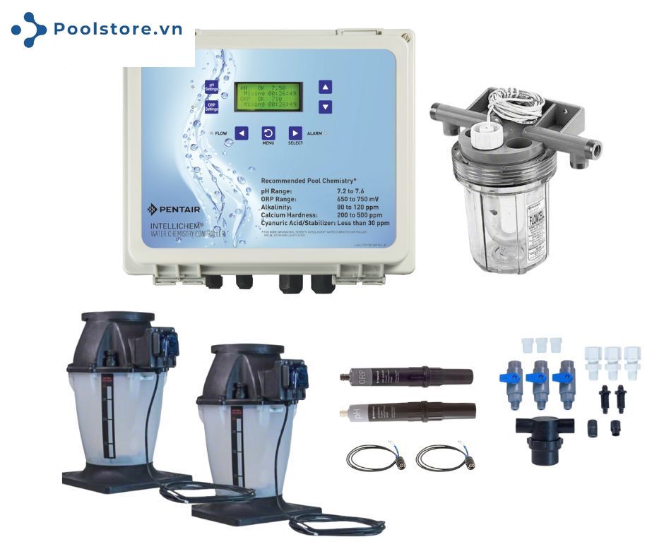The IntelliChem Chemical Controller automatically monitors pool pH and sanitizing levels and delivers just the right amount of chemicals. IntelliChem Chemical Controller can work independently or in conjunction with other Pentair automation products. Its built-in Langelier Saturation Index calculator lets pool owners know when the water is in or out of balance. IntelliChem Chemical Controller uses the same technology found in commercial installations, water parks, hotels, and community pools.