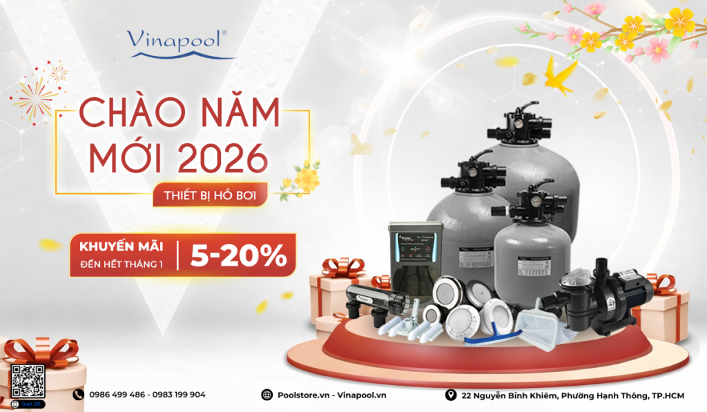 Năm mới 2026 đánh dấu một khởi đầu mới, là thời điểm lý tưởng để nâng cấp, bảo trì hoặc đầu tư hệ thống hồ bơi nhằm đảm bảo vận hành ổn định, an toàn và tiết kiệm chi phí lâu dài. Nhân dịp chào năm mới 2026, Vinapool chính thức triển khai chương trình khuyến mãi thiết bị hồ bơi với mức giảm giá hấp dẫn từ 5% đến 20%, áp dụng cho nhiều dòng sản phẩm chính hãng, chất lượng cao.