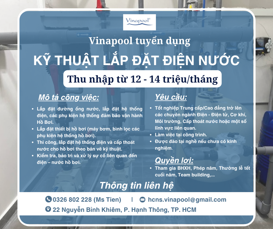 Ứng tuyển trực tuyến: gửi CV và thông tin cá nhân về email hcns.vinapool@gmail.com