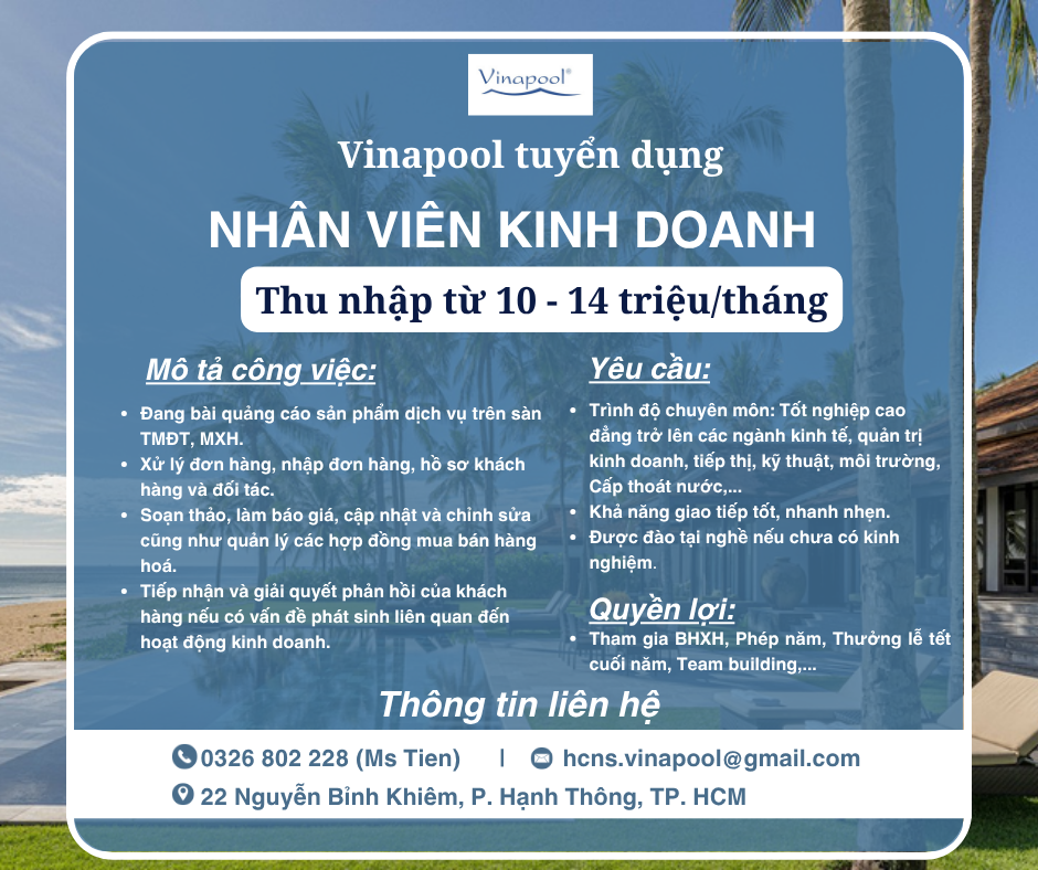 Ứng tuyển trực tuyến: gửi CV và thông tin cá nhân về email hcns.vinapool@gmail.com